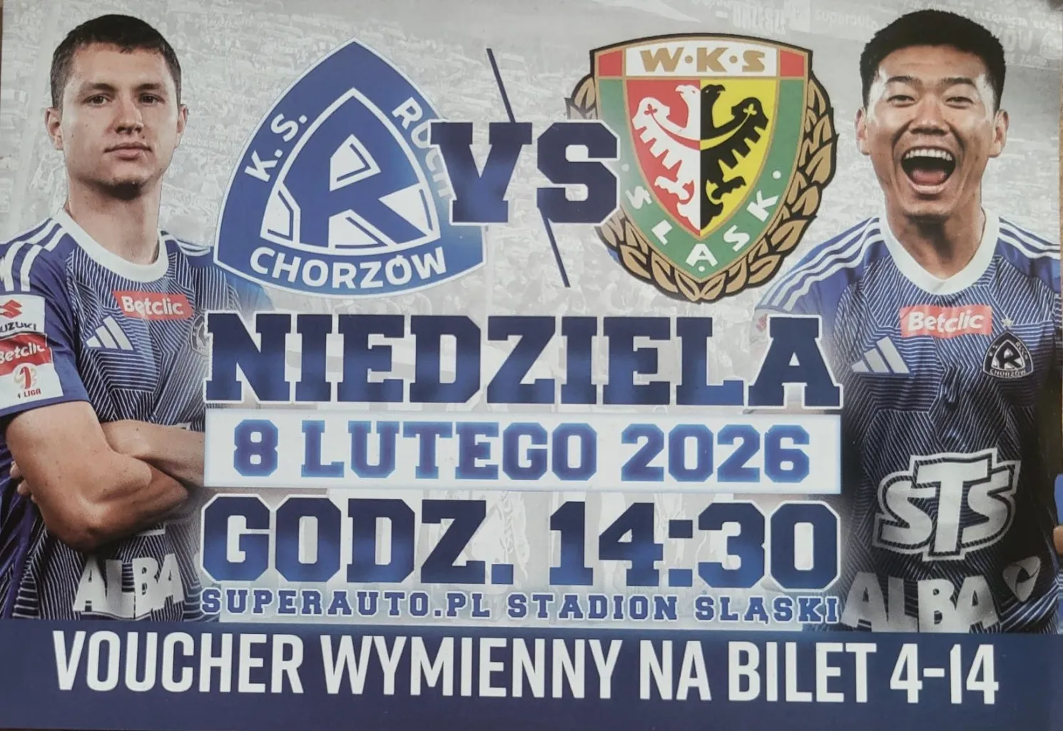 Miło nam poinformować, że dzięki współpracy z klubem Ruch Chorzów i stowarzyszeniem kibiców Niebieski Racibórz otrzymaliśmy 150 voucherów, które można zamienić na darmowe bilety na mecz Betclic 1 ligi.