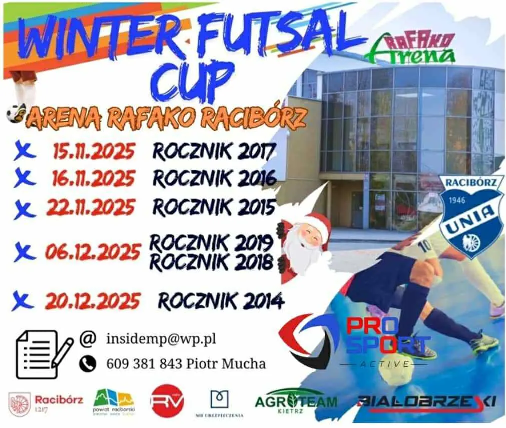 Miejski Klub Sportowy Unia Racibórz zorganizuje cykl halowych turniejów. To będzie prawdziwe święto futbollu. Są jeszcze wolne miejsca, ale już naprawdę ostatnie! Warto szybko zapisać swoją drużynę. Szczegółowe informacje - trener koordynator Piotr Mucha tel. 609 381 843.